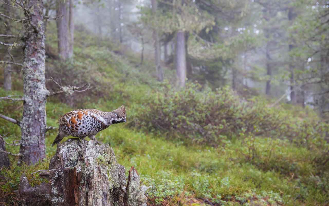 Le coppie passano l’inverno ben nascoste nella fitta foresta. Appollaiati sugli alberi, sgranocchiano i germogli e amenti di nocciolo, ontano, pioppo e salice. Le conifere forniscono copertura e protezione dai nemici naturali come l’astore. A causa della scarsa visibilità nel sottobosco parzialmente fitto, il francolino di monte ama comunicare tramite suoni di contatto, versi di allarme e il frullare delle ali quando spicca il volo.