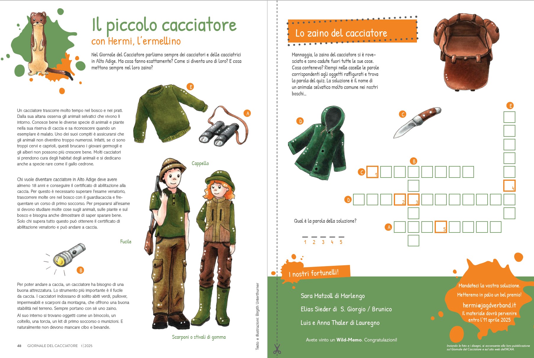 Pagina per bambini 1/2025 – Lo zaino del cacciatore