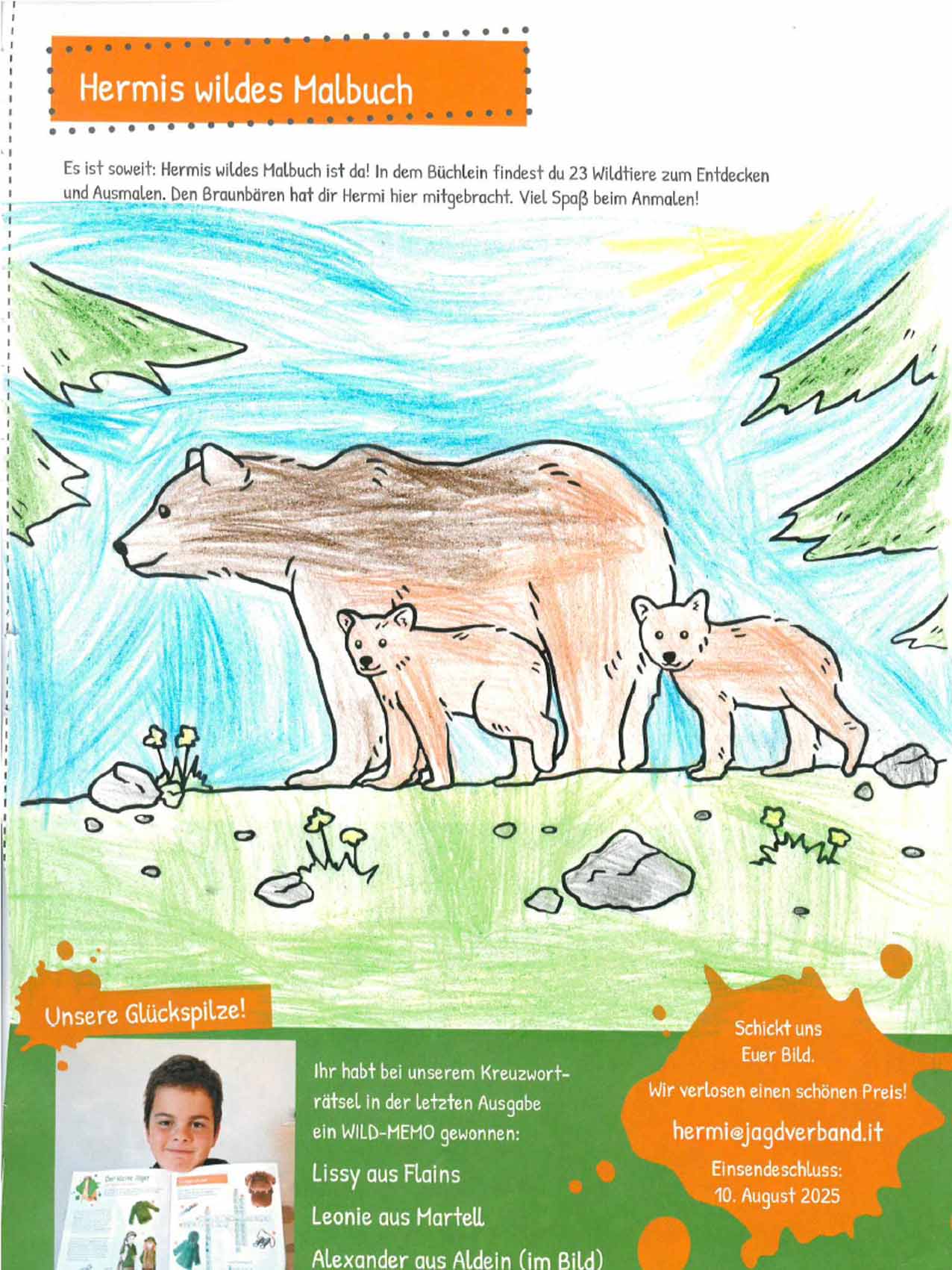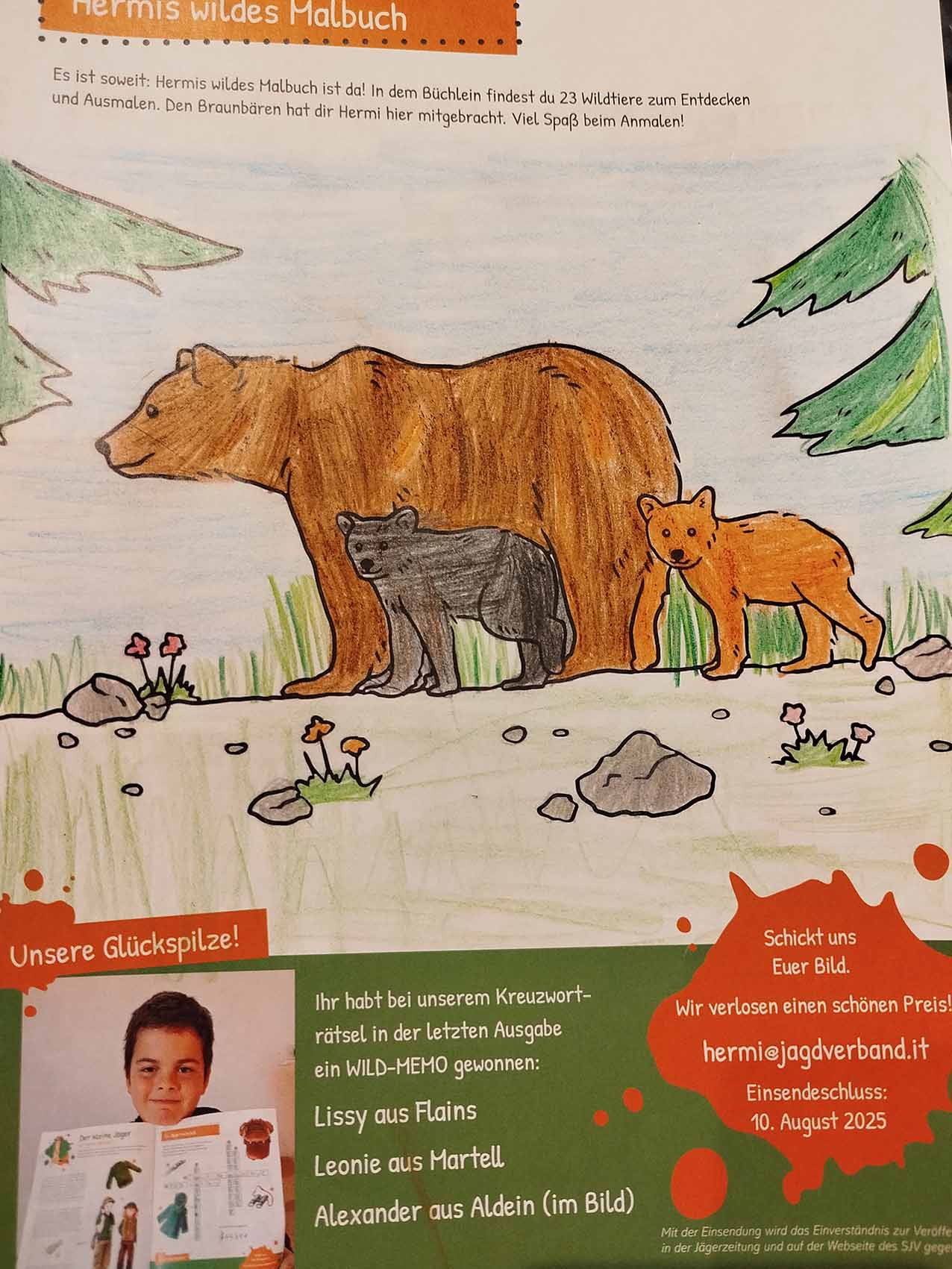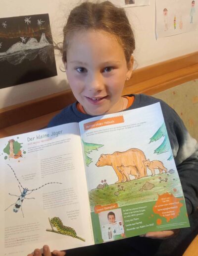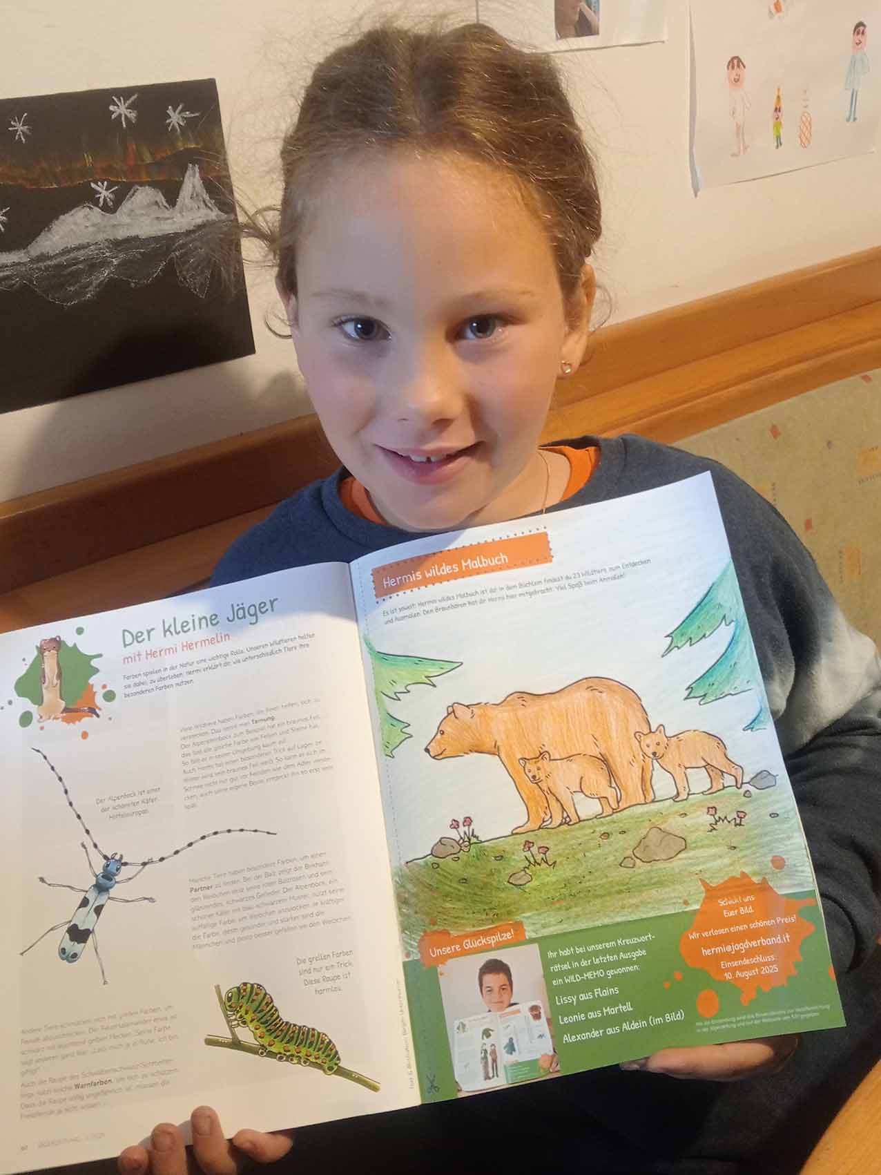 “Il piccolo cacciatore”, così si intitola la nostra pagina per bambini nel Giornale del Cacciatore. La mascotte, l’ermellino Ermi, vi accompagna attraverso gli ecosistemi dell’Alto Adige, vi porta a conoscere i suoi amici, cioè gli animali selvatici, e in ogni edizione vi propone qualcosa di divertente da dipingere, giocare, costruire con le vostre mani, oltre ad un favoloso gioco a premi.