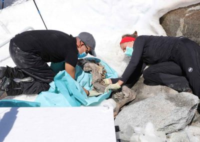 La carcassa congelata del camoscio era stata scoperta già nel settembre 2019 da Hermann Oberlechner che, durante un’escursione sul Turnerkamp, ha notato la sagoma dell’animale affiorare tra la neve e il ghiaccio a 3.000 metri di altitudine. Non appena Markus Kaiser, l’agente venatorio della zona, ha saputo del ritrovamento, ha fatto di tutto perché gli scienziati si occupassero di questo reperto. Fin da subito era convintissimo che si trattasse di una scoperta straordinaria.