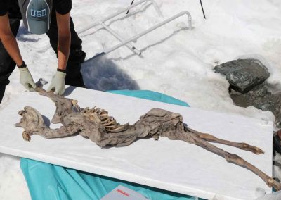 Kaiser è riuscito a coinvolgere l’Istituto per lo studio delle mummie dell’EURAC Research. Qualche giorno fa, il sensazionale ritrovamento è stato recuperato dagli specialisti dell’EURAC con l’aiuto degli alpini. La carcassa è stata trasportata in aereo al NOI Techpark di Bolzano, dove si trova l’Istituto per lo studio delle mummie. Conservata in un’apposita cella frigorifera, durante i prossimi mesi la mummia di camoscio sarà oggetto di approfonditi esami. I ricercatori sperano di ottenere risultati significativi da utilizzare per elaborare un protocollo di conservazione valido a livello mondiale per le mummie dei ghiacci, come quella di Ötzi.