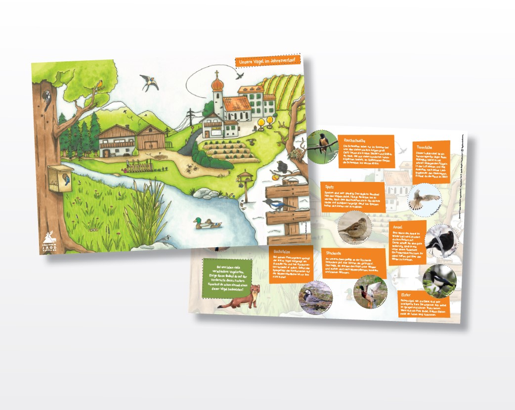 Das Poster zeigt einige unserer heimischen Vogelarten. Es eignet sich sehr gut, um Kindern verschiedenster Altersstufen einen Zugang zur heimischen Vogelwelt zu schaffen und bietet ausreichend Möglichkeiten, um viele verschiedene Themen zu besprechen. Das Poster ist kostenlos erhältlich, es kann unten heruntergeladen oder in ausgedruckter Form bestellt werden..