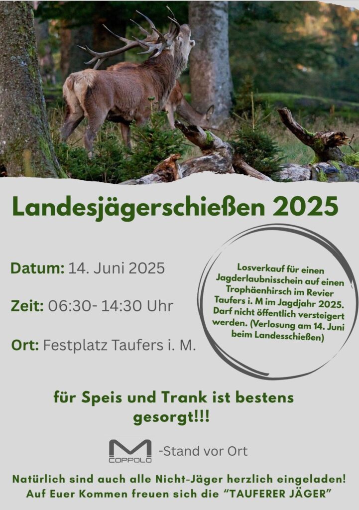 Das Landesschießen der Südtiroler Jägerschaft 2025 findet im Revier Taufers im Münstertal statt.